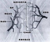 微循环是指微动脉与微静脉之间微血管中的血液循环,是血液与组织细胞进行物质交换的场所。在显微镜下才能加以观察。一般由微动脉、后微动脉、毛细血管前括约肌、真毛细血管、通血毛细血管、动-静脉吻合枝和微静脉七部分组成,是心血管系统与组织细胞直接接触的部分。微循环基本功能是实现物质代换,向各组织细胞输送养料和运走代谢产物。
