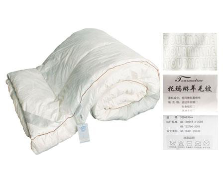 采用100%纯新澳大利亚绵羊细绒,采用意大利技术,经过漂洗、脱脂、消毒、烘干等工序精制而成。天然的动物蛋白纤维,品质纯正,弹性好、拒霉防蛀,不容易板结。具有非常优异的导湿透气性,保暖性是普通羊毛的1.2 倍,可常保舒适;因此此款羊毛被因为其材质的关系所以要比其他被子昂贵。除了重量轻、体积小、保暖好等等的好处外,还有一个很重要的优点,它不会引起过敏反应,有些老人或哮喘患者对羽绒被或纤维较细小的棉被会产生过敏反应,羊毛被就不会对他们产生副作用。