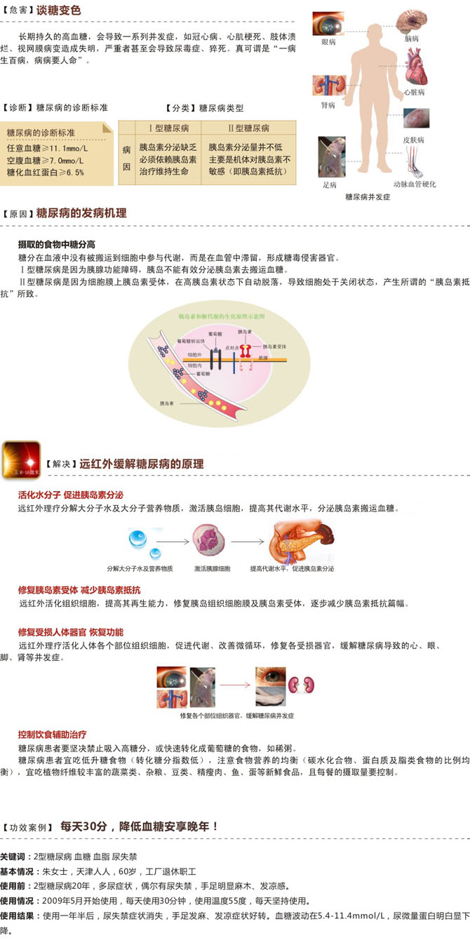④治疗。主要适用人群有:1型糖尿病患者;计划受孕和已孕的糖尿病妇女;需要胰岛素强化治疗的2型糖尿病患者。